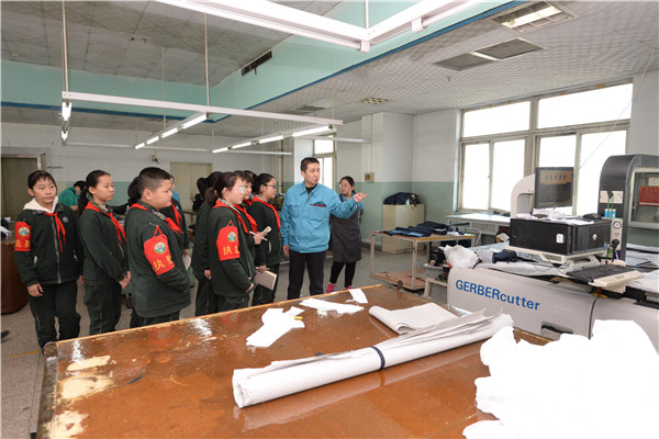 在公司工作人员的带领下,小学师生参观了公司的产品展览室,深切感受到从战争年代到社会主义新时代企业翻天覆地的变化和国家军队装备的不断完善和国际化,走访了研发、生产车间,了解了军服从样式设计、布匹准备到服装制作、成衣包装等整个生产流程。看着不同的服装在紧张有序的生产线上制作出来,源源不断的发往部队,发往国内外市场,他们体会到我国制衣技术的飞速进步和祖国经济的蓬勃发展。