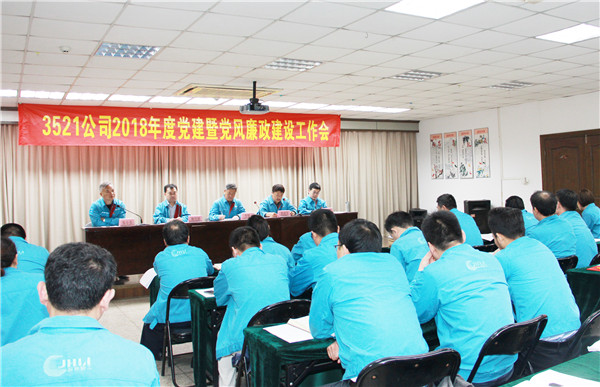 近日,际华3521公司召开“2018年度党建暨党风廉政建设会”,党委书记李修元,执行董事夏前军,总经理朱国林,党委副书记、纪委书记、工会主席张小龙、其他中层以上领导及青年骨干共40余人参会。