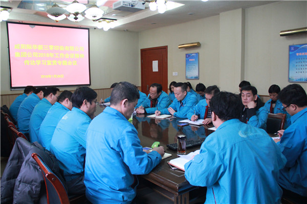 1月30日下午,新三零公司召开全体干部大会,传达学习集团第二次党代会和2018年工作会议精神,会议由公司执行董事、党委书记吴嵩彬同志主持。吴嵩彬介绍了两级集团工作会议的召开情况,传达了新兴际华集团奚国华董事长、党委书记题为 《登高望远 埋头苦干 为打造世界一流多元跨国集团而奋斗》的报告,王兆刚书记题为《聚焦监督执纪问责 推进全面从严治党 为集团“第三次创业”提供坚实纪律保障》的报告;总经理宋超英传达了际华集团董事长、党委书记李义岭题为《迈进新时代,适应新要求,开启新征程,实现新作为,奋力书写际华集团改革发展新篇章》和总经理、党委副书记袁海黎题为《改革创新,锐意进取,扎实苦干 ,不断增强际华集团可持续发展的核心竞争力》的工作报告。
