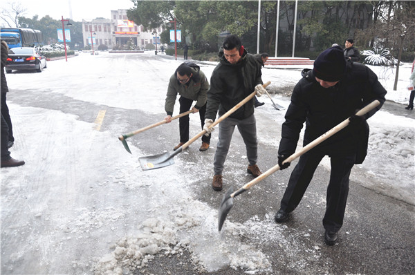 1月26日-28连续三天,湖南岳阳普降瑞雪。际华3517公司新老生产区路面出现了结冰打滑现象。为保证员工出行安全和正常生产,该公司提前组织相关部门负责人召开会议,采取应对措施,对清扫积雪进行部署安排,并利用周末时间对安全隐患进行地毯式的全面搜索和排查,发现问题及时处理。1月29日一大早,公司组织党员骨干组成扫雪突击队,对区域范围内的积雪进行铲除。虽然道路上的积雪经过碾压后已经光滑坚硬,再加上持续降雪,清理工作难度加大。但大家齐心协力,笤帚、铁锨、簸箕,各种清扫工具轮番上阵,扫的扫、铲的铲,干得热火朝天,使新老生产区路面干净整洁,保证了职工出行及生产安全。