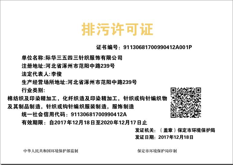 近日,际华3543公司喜获河北省保定市环境保护局颁发的有效期限三年的排污许可证,这标志着地处京津冀特殊地理位置的3543公司近年来在环保事业上所做的努力被进一步肯定,同时也保障了公司今后的正常生产运转。