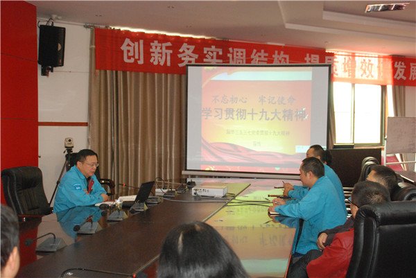会后,党委书记杜江要求各党支部书记贯彻落实党的十九大精神宣讲,要以上率下带头宣讲,要结合实际组建宣讲团到生产一线宣讲,切实把党的十九大精神和习近平总书记参加贵州代表团讨论时重要讲话精神送到各分厂、车间、班组中。