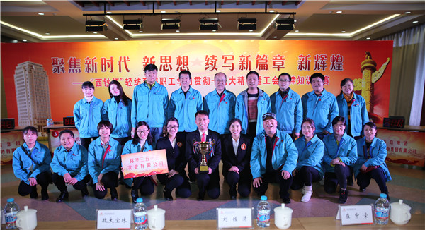 11月16日下午,由西安市轻纺工会主办的“西钞杯”轻纺系统职工学习贯彻十九大精神暨工会法律知识竞赛在西安印钞有限公司举办,际华3513公司荣获团体比赛三等奖。西安市总工会副主席魏大宝珠、市轻纺工会主任王晖莅临现场指导并为获奖团队颁奖。