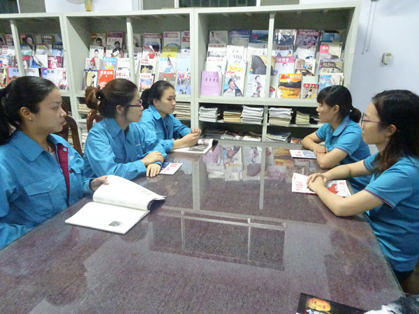 9月28日19:30分,在际华三五四二纺织有限公司职工书屋,中央企业团工委委员、全国劳动模范、布机车间员工刘沙,就《习近平的七年知青岁月》一书与部分大学生座谈,交流学习体会。