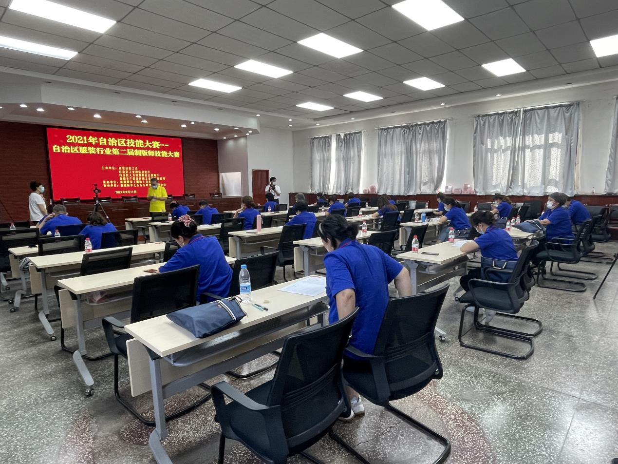 此次大赛由自治区总工会联合自治区工业和信息化厅、自治区人力资源和社会保障厅、兵团工业和信息化局主办,自治区服装(服饰)行业协会承办,际华七五五五公司协办,自9月11日在昌吉市新疆际华七五五五职业装有限公司正式开赛,来自全疆各地、州、市和兵团的38名选手参加比赛。大赛为期3天,分为理论实践和实际操作两部分,设置理论考试、立体剪裁、服装制版、样衣制作4项内容。比赛中,选手们纷纷使出看家本领,一张张普通的白纸在他们的工具下绘制成标准的工艺版图,一块块简单的胚布在他们的珠针固定下展现出成衣的立体样貌,一份份完整的面辅料在他们的缝制下变身为一件精美的成衣,每一个环节都充分表现出他们高超的业务水平和丰富的实战经验。